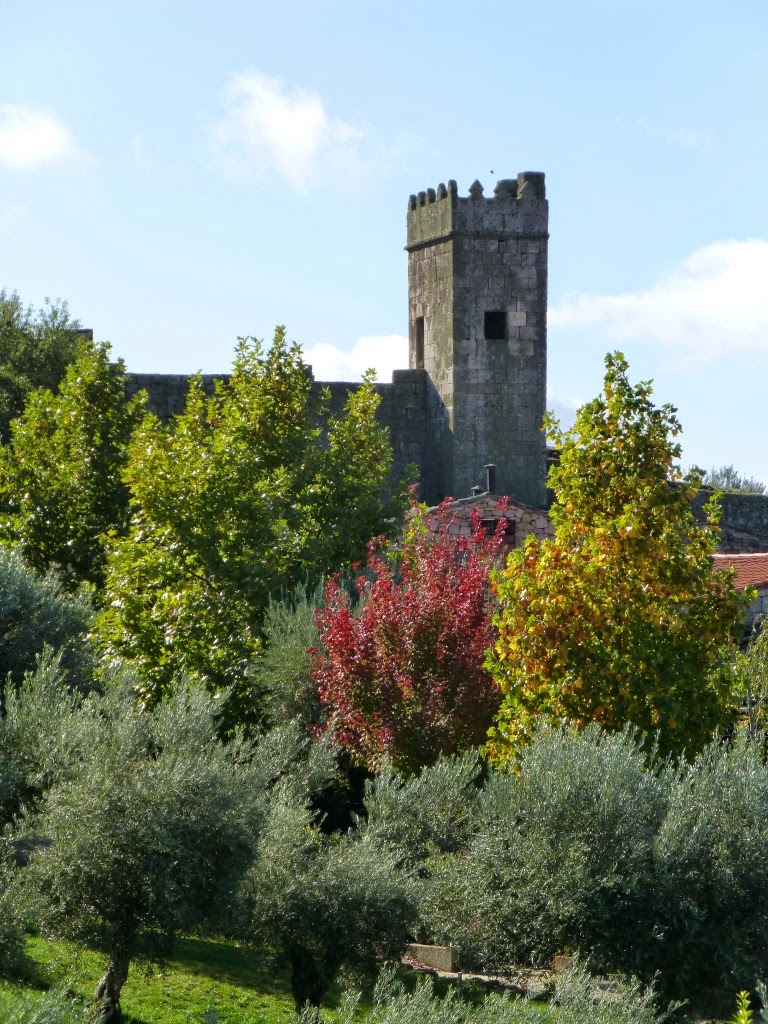 reforçada, no século XIV, por três torreões de planta quadrangular denominados